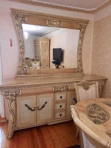 Gəncədə.1300.cüzi endirim olacaq.köçmüşük yeni evə uyğun gəlmədiyi üçün satılır. Malayziya mebelini bilənlər bilir çox keyfiyyətli mebeldir..səliqəli işlənib.stolunun üzərində həmişə klyonka çəkilib işlənib.şüşələri qaldırıb silinir.köçərkən söküb gətirmişik. alan üçün xeyirli olsun