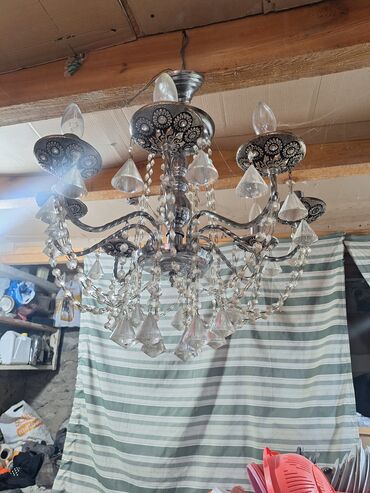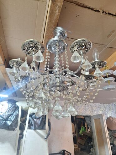 - Dizayn: çoxşaxəli konstruksiya, hər şaxədə gül naxışlı dekorativ kasalar və iri damla formalı asqılar; aşağı hissədə çoxsıralı muncuq zəncirlər