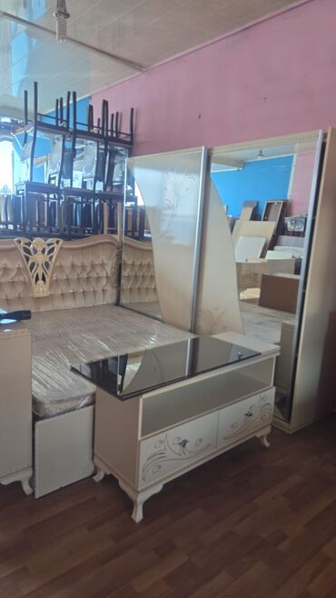 - Şkaf: sürüşkən qapılı, böyük güzgülü fasad. Qapılarda dekorativ naxışlar.