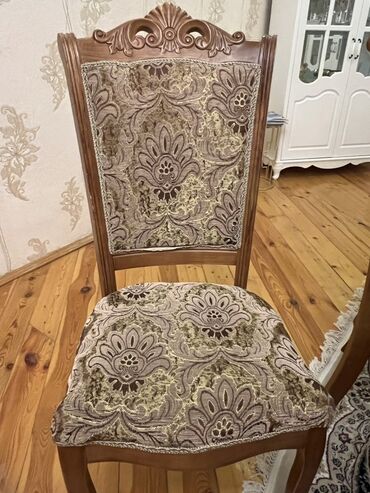- Stullar: klassik oyma bel hissəsi, taxta qolları olan baş stullar; yumşaq oturacaq və bel hissəsi
