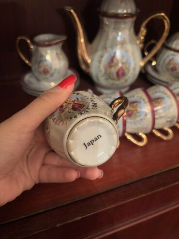 Gədim sovet gəhfə servizi,rusiyanın,bufetdə galıb,işlınməyib,6 fincan,6 nəlbəki, süd gabı, çaydan,bir dənə şəkər gabısı yoxdur,gırılıb ,heç bir sınığı,gırıntısı yoxdur 25man