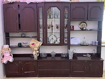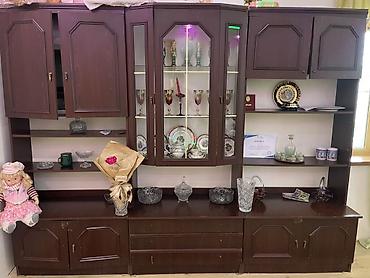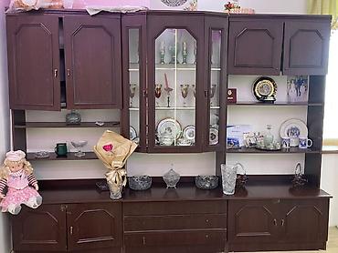 - Funksionallıq: çoxsaylı rəflər, vitrin bölməsi, iri həcmli alt dolablar və çekmecələr; dekorativ qab-qacaq, kubok və suvenirlər üçün nümayiş zonası