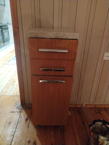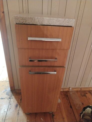 - Quruluş: yuxarıda 1 çekmece, ortada 1 dar qapaq/çekmece bölməsi, aşağıda 1 geniş qapalı bölmə – qab-qacaq, ədviyyat, mətbəx ləvazimatları üçün ideal.