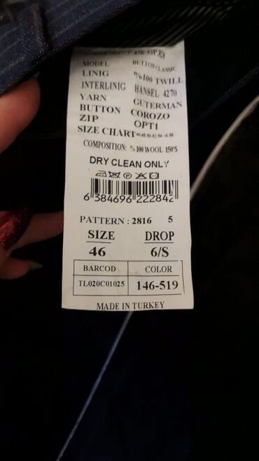 Geyim sifarişlə yeni alınıb gətirilib və sadəcə 44-0 ölçüsü uyğun gəlmədiyindən satılır. İki parçalı kişi kostyumu – qrafit boz rəngdə - Üst: ikicərgəli düymələmə, geniş haşiyəli (peak lapel) yaxa,...