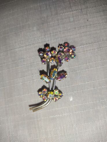 Kristal bəzəkli çiçək formalı brosş
