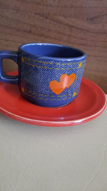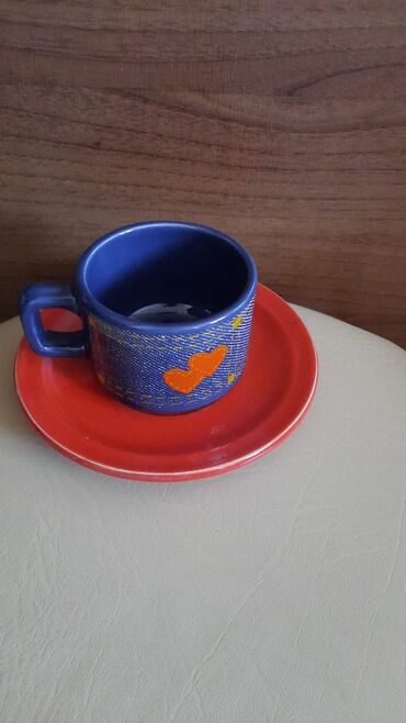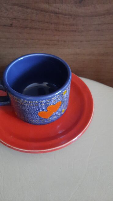 Ünvandan götürməKrujka+nelbeki. Vintaj. Yugoslavia istehsali. Krujka d‐ 8 sm, h‐ 6 sm, nelbeki d - 15,5 sm. Bir desti/ fincan+nelbeki = 35 manat. Gence seheri