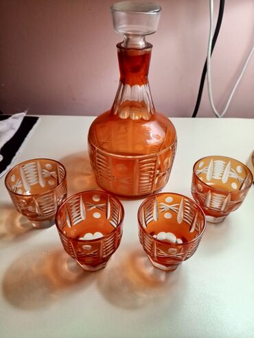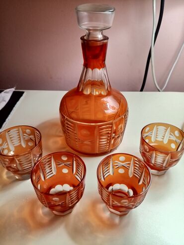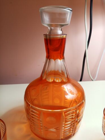 - Stəkanlar: qalın dibli, çoxüzlü forma; dekanterlə eyni kəsim motivləri