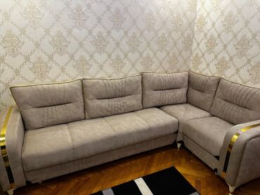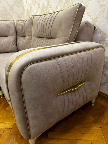 - Üstünlüklər: künc hissə əlavə oturma sahəsi yaradır; qızılı ornamentlər interyerə eleqant vurğu qatır; geniş oturacaqlar gündəlik istirahət üçün rahatdır