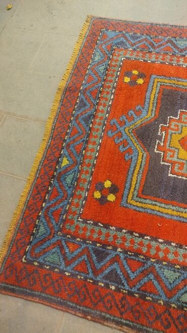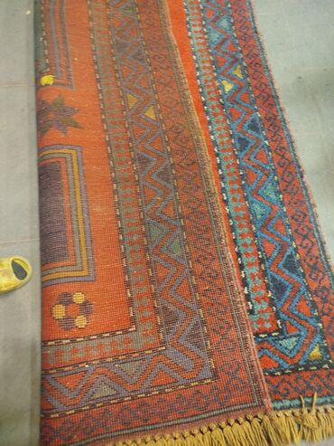 Ölçüləri 3×50 1×70. Qədim üslubda əl toxuması kilim - Növ: Kilim (ikiüzlü, xovsuz toxunuş) - Material: Təbii yun iplik - Rəng palitrası: parlaq qırmızı fon, lacivərdi/göy, yaşıl, qara və narıncı ...