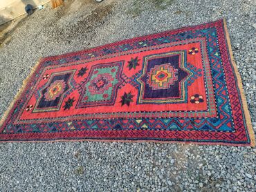 1.70 /3.40.ölçü Qədim üslubda əl toxuması kilim - Naxış: Mərkəzdə dörd romb motivi, yanlarda oxvari (budaq) ornamentləri, klassik Qafqaz koloritinə uyğun həndəsi kompozisiya - Rəng palitrası: dəri...