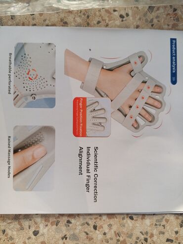 Ajax firmasının istehsalı olan, barmaqların hərəkətini məhdudlaşdıran və fiksasiya edən, xəsarətlər və ya əməliyyatlardan sonra bərpa prosesində istifadə olunan ortopedik əlcək. Əlcək, havalandırma üçün deşikləri olan boz rəngli plastik çərçivədən ibarətdir. Üç fiksasiya qayışı və daşıma üçün qara rəngli qayışı var. Fərdi barmaq düzəldilməsi üçün nəzərdə tutulub.