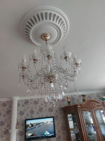 Klassik üslubda, kristal asqılı tavan lustrası İdeal vəziyyətdədi , 12 işıqlıdı