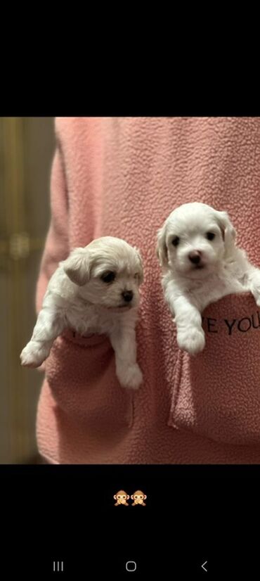 Pişikden daha kiçik it düşünün😍Çekisi 2kq a qeder 😍Micro Maltese Balaları satılır.Erkek balalar.Ag ,qehveyi ve sarı .Saf qan ana micro maltese ag ,ata micro Maltese qehveyi😍yeni doğulublar Indıden ...