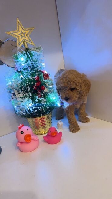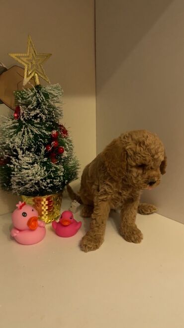 Şirin, balaca oyuncaq ölçülü it balaları – yüngül qızılı/karamel tüklü, qıvırcıq və hipoalerjenik xəz. Kompakt bədən quruluşu, qısa burun, qara düymə kimi burun və iri parlaq gözlər. Ev şəraitinə, ...