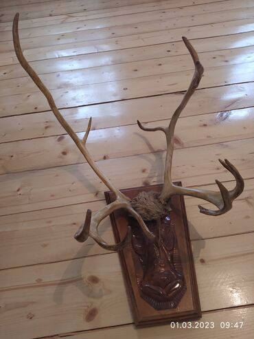 Maral ( sığın) buynuzu, dekor üçün divara asmaq yeri var. Keçən əsrin ortalarında Moskvadan gətirilib. ölçüsü: 59 sm x42 sm