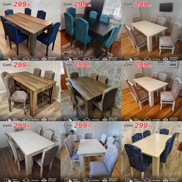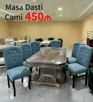 Qonaq otağı üçün, Yeni, Açılmayan, Dördbucaq masa, 6 stul