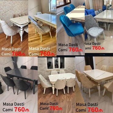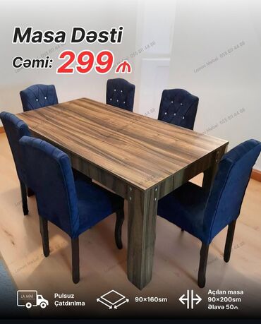 Qonaq otağı masa dəsti stol stul dəsti yemək dəsti - Komplekt: 1 masa + 6 stul - Masa: ağac teksturalı/taxta görünümlü üst, düz və möhkəm ayaqlar, metal bərkidicilər - Ölçü: 90 x 160 sm (şəkillər...