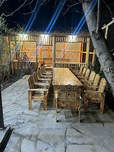 Masa və oturacaqlar. Keyfiyyətli və gözəl görünüşlü. Şam ağacından yığılır. 4 nəfərlik 180azn. 6 nəfərlik 250 azn. 8 neferlik 320 azn 10 nəfərlik 420 azn azn.12 nəfərlik 520 azn