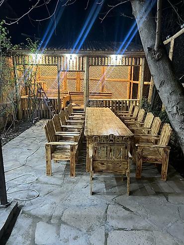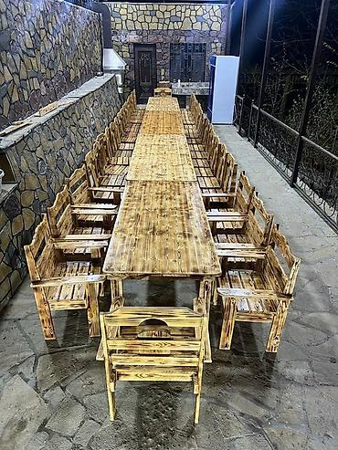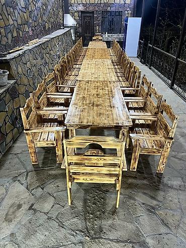 Masa və oturacaqlar. Keyfiyyətli və gözəl görünüşlü. Şam ağacından yığılır. 4 nəfərlik 170 azn. 6 neferik 230 azn. 8 neferlik 320 azn. 10 neferlik 400 azn