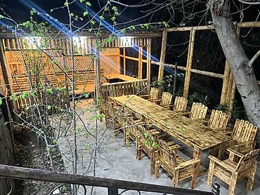 Masa ve oturacaqlar.Qiymet olcuye gore deyişir.Şam ağacindan yığılır 4 nəfərlik qolsuz 180azn, 6 nəfərlik 250 azn, 8 nəfərlik 320 azn, 10 nəfərlik 420 azn
