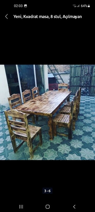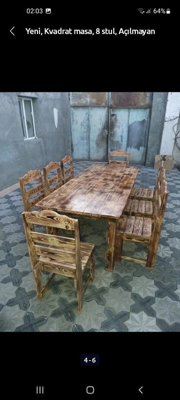 Yeni, Dördbucaq masa, 2 stul, Açılmayan, Skameykalar ilə, Alüminium, Azərbaycan