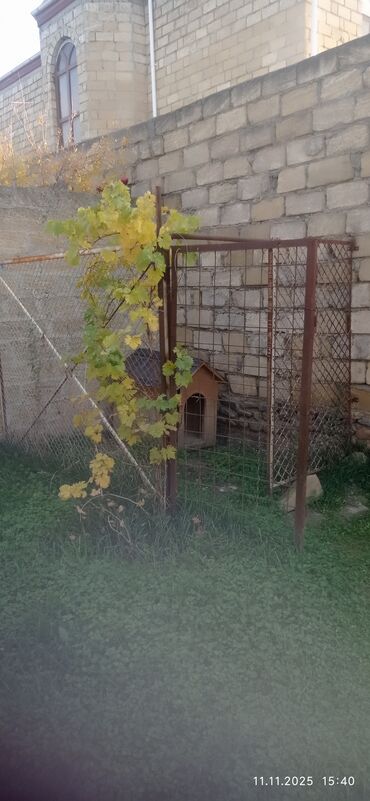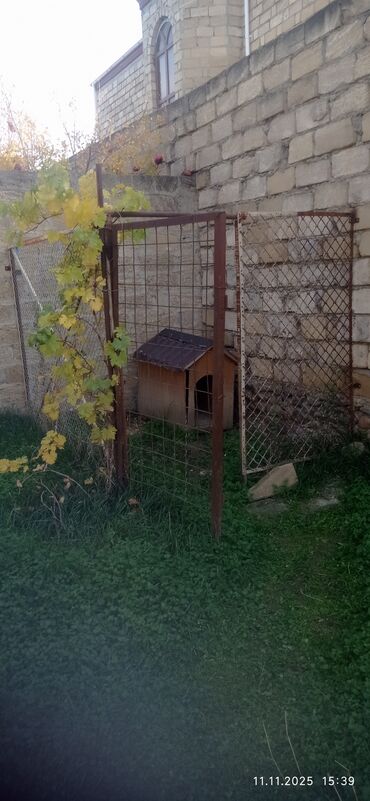 Metall karkaslı it qəfəsi və taxta it evi (buda daxildir).