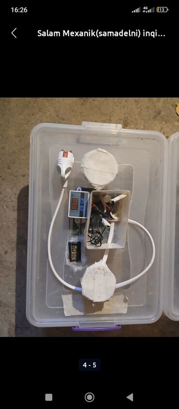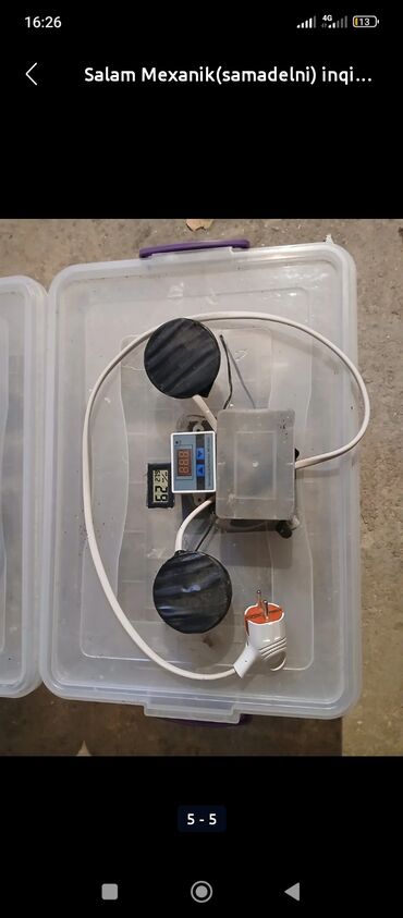 - Tozsuz, şəffaf plastik konteyner üzərində qurulmuş mexanik inkubator sistemi