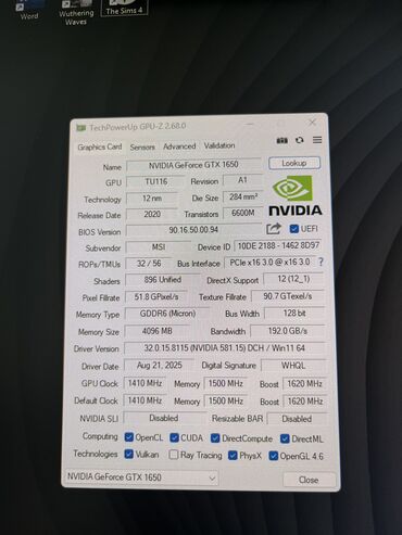 - GPU: NVIDIA GeForce GTX 1650 (TU116)