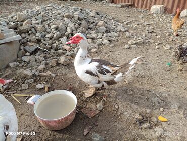 Muscovy (hinduşka ördəyi) ördəkləri - Növ: Muscovy (barbariska) ördəyi - Rənglər: qarışıq naxışlı qara-ağ, ağ və qara tonlar - Say: qrup şəklində - Qidalanma: taxıl və yaş yemlərlə bəslənməyə uyğu...