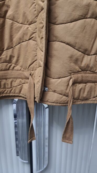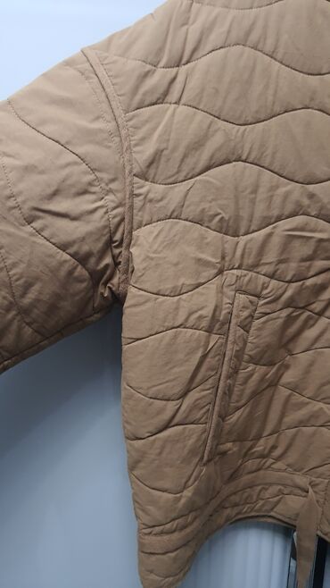 Qadın/personal istifadə üçün qısa puffer tipli yüngül jaket. - Rəng: karamel/qəhvəyi. - Model: üfüqi tikişli, qısa kəsim, stand-yaxa. - Bağlanma: ön hissədə tam uzunluqlu fermuar. - Ciblər: iki ya...