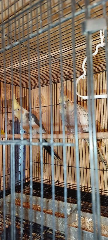 Nimfa (Cockatiel) papağanları - Növ: Nimfa (Nymphicus hollandicus) - Rənglər: Boz/inci naxışlı, sarı başlı-boz gövdəli variasiyalar - Xüsusiyyətlər: Qrebenli baş tükləri, yanaqlarda portağal ləkəl...