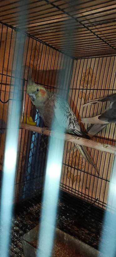 Nimfa (Cockatiel) tutuquşu - Növ: Nimfa (Nymphicus hollandicus) - Rəng: Boz gövdə, sarı daraq və üz, yanaqlarda narıncı ləkələr - Xüsusiyyətlər: Zəkalı və ünsiyyətcil quşdur, fınxırma/fit səslərin...