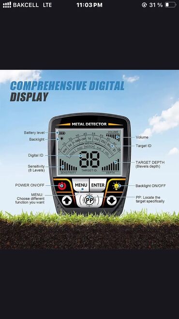 Yeni qutuda maksimum dərinliyi 0,80-1,00 1 metr Новый Складной металлодетектор TX640 для использования под землей и под водой, оснащенный цифровой идентификацией цели и индикацией глубины. Включает...