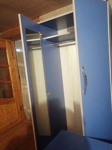 - 2 qapılı şkaf: asılqan borusu və üst rəfi var, xrom tutacaqlar.