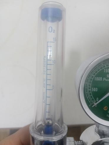 Oksigen balonu və axın tənzimləyicisi - Metall korpuslu mavi oksigen balonu - Üst hissədə manometr (təzyiq göstəricisi), reduktor və axın ölçən (rotametr) quraşdırılıb - Nəmləndirici qabla komplek...