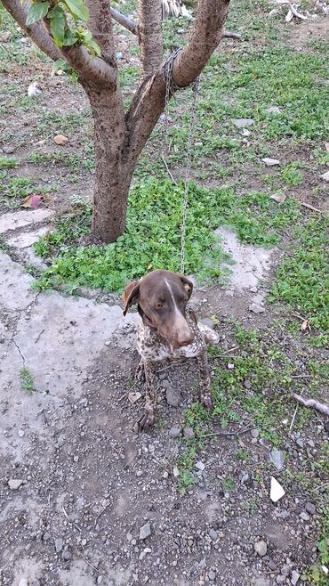 Alman qısatüklü ov iti (German Shorthaired Pointer) balaları - Nəsil: Qısatüklü pointer tipli ov itləri - Rənglər: Şabalıdı-qəhvəyi, ağ-qəhvəyi ləkəli, qara-ağ ləkəli - Fotolarda ana və ata pointe...