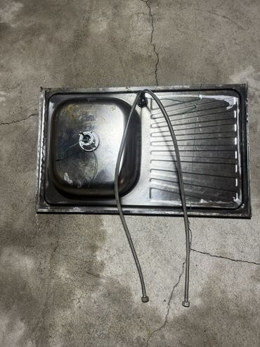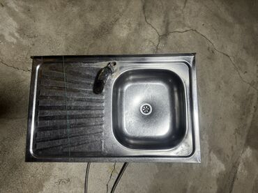 - Tək qablı lavabo, sağda qab (kvadrat-yuvarlaq künclü), solda geniş damcılıq/qarqara səthi