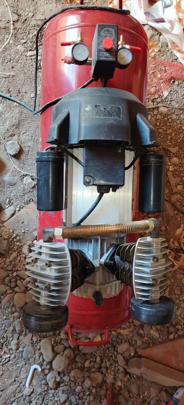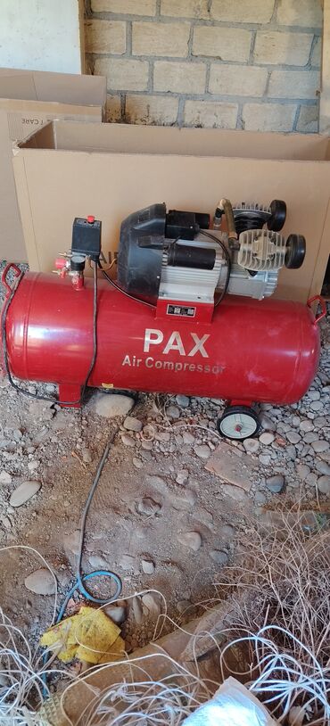 PAX Air Compressor – hava kompressoru - Brend/model: PAX Air Compressor (qırmızı şaquli silindrli borulu çən, təkərli) - Güc bloku: elektrik mühərriki, kəmər ötürücülü nasos başlığı - Çən həcmi: i...
