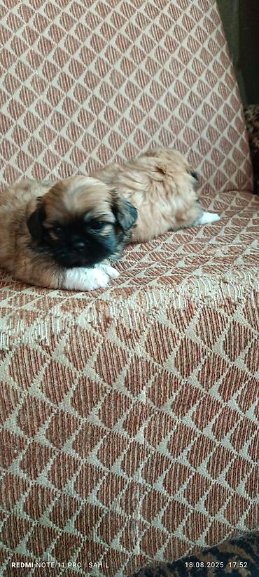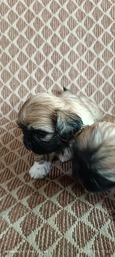 Pekines balası – 50 günlük - 189 ₼... Miniatür, uzun və yumşaq tüklü, iki rəngli (ağ-qəhvəyi) xəz örtüyü ilə. Yastı üz quruluşu, qısa burun, iri qara gözlər və kiçik asma qulaqlar. Kompakt bədən qu...