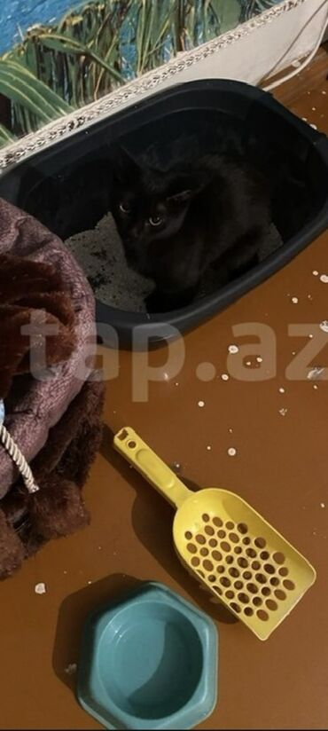 Pişik üçün tam aksesuar dəsti - Yumşaq “yuva” tipli pişik yatağı: qulaqcıqlı dizayn, içi isti və rahat, asılan oyuncaqlı pompon. - Qum qabı: yaşıl rəng, çıxarılan ızgara/əlcək üçün yer, qum küreyi...