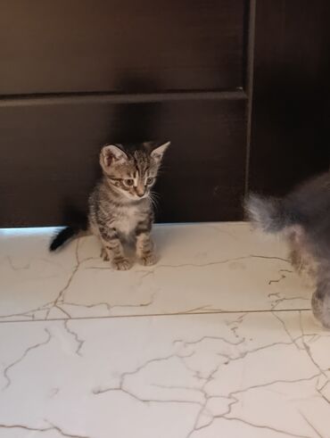 İki balaca pişik – oyunsevər və mehriban - Cins: yerli (tekir və ağ-boz naxışlı) - Yaş: balacalar - Rəng və xüsusiyyətlər: - 1-ci: tünd tekir kürkü, sinə və pəncələrdə ağ ləkələr, iri ifadəli gö...