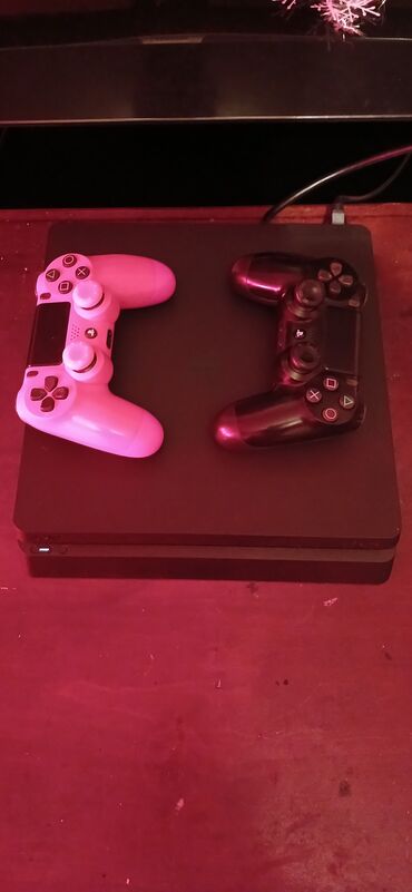 Sony PlayStation 4 (PS4) Slim oyun konsolu ideal vezyetde Temizlik ,Termopasta vurulub , pultlar ideal drift yoxd her sey islekdir . 450 azn 2 pult ile 500 azn 2 pult ve qulaqciq .