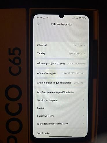 - Qutu tərkibi: Telefon və orijinal sarı POCO C65 qutusu (şəkillərdə göründüyü kimi)