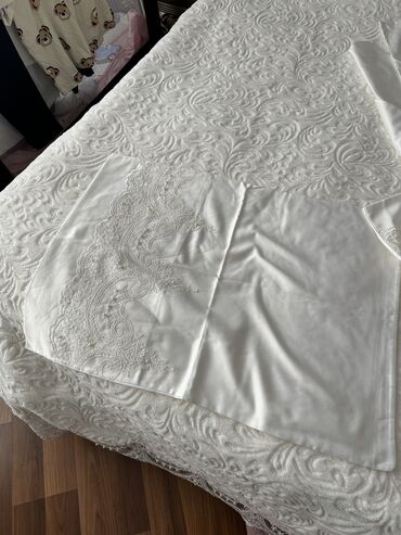 Teze yatag ortusu ve atlas pastel desti,4 yastig uzu ikisi dekor,1 yorgan uzu,1 rezinli melefe, 300 man alinib,