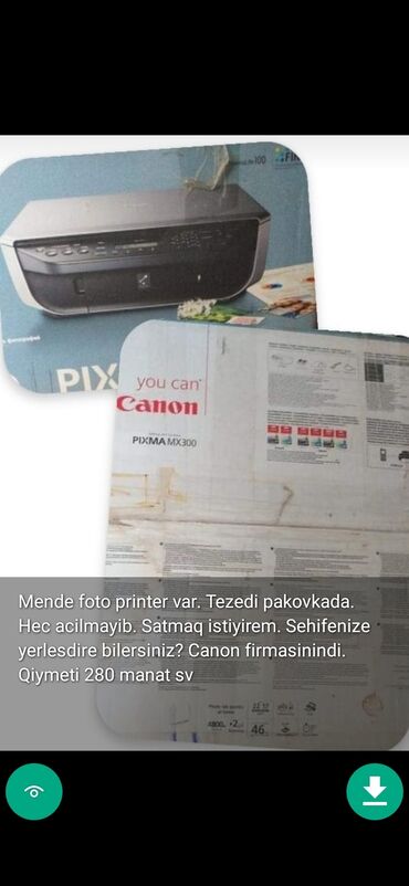 Yeni̇....Canon E414 yeni̇ bağli qutuda printer həm rəngli həm ağ qara. ✅️ kartnan ödəniş var ✅️kserekopiya,skayner, həm kamputerdən çap ✅️Ütündə katriclər dolu gəlir ✅️ mallara zəmanət verilir.. Tə...