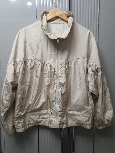 Qadın/kız üçün yüngül kapüşonlu küləkkeş (windbreaker) gödəkçə. - Rəng: krem/açıq bej - Ön hissə: tam fermuarlı, halqalı (ring pull) dartqı - Kapüşon: iplə tənzimlənən - Qol dizaynı: hər iki qolda...