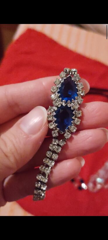 - Gümüşü rəngli metal əsas üzərində parlaq, şəffaf daşlarla bəzədilmiş.