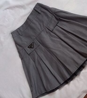 Boz rəngli qısa ətək – plisse detallı