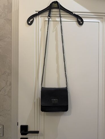 Qara çiyin/çarpaz çanta - Material: hamar teksturalı süni dəri - Rəng: klassik qara, qızılı metal detallarla - Dizayn: üst qapaqlı, V formalı qızılı kilid - Kəmər: uzun və tənzimlənən çiyin kəməri...