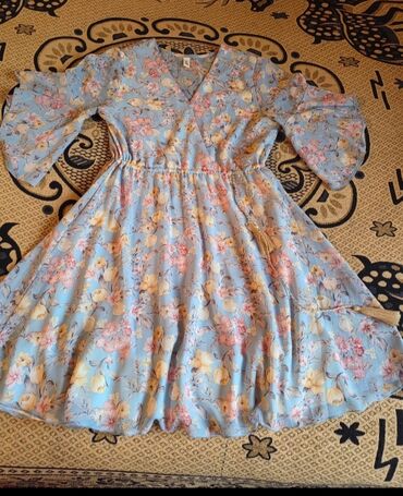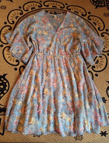 - Model: V-yarım dekolteli, qarında iplə yığmalı (elastik bel), ətək hissəsi açılan A-kəsim